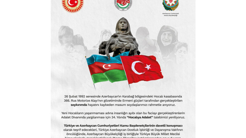 Fevralın 25-də Türkiyə Böyük Millət Məclisinin (TBMM) İctimaiyyətlə əlaqələr idarəsinin konfrans zalında Xocalı soyqırımı qurbanlarının xatirəsinə həsr olunmuş anım mərasimi keçiriləcək.
