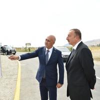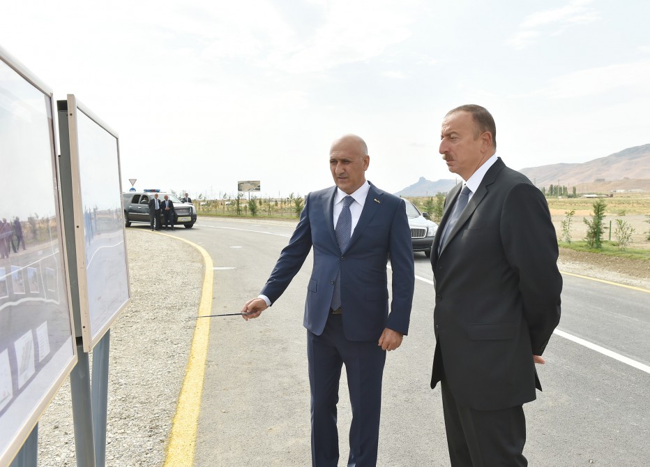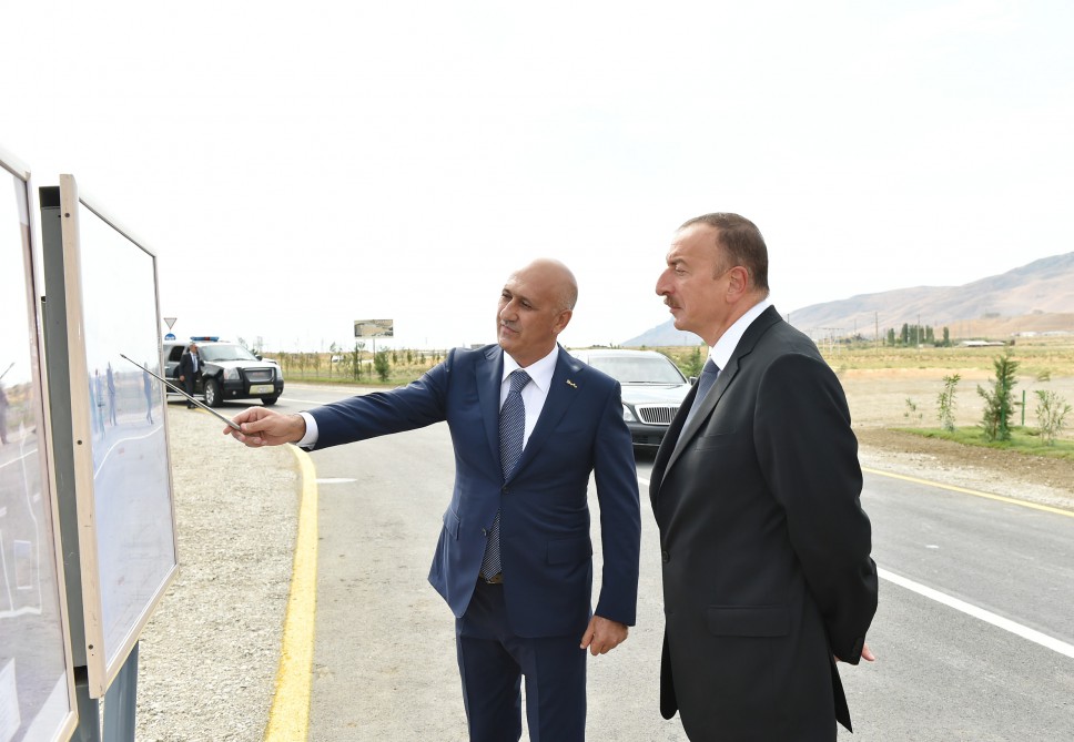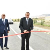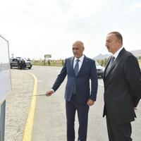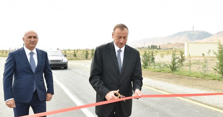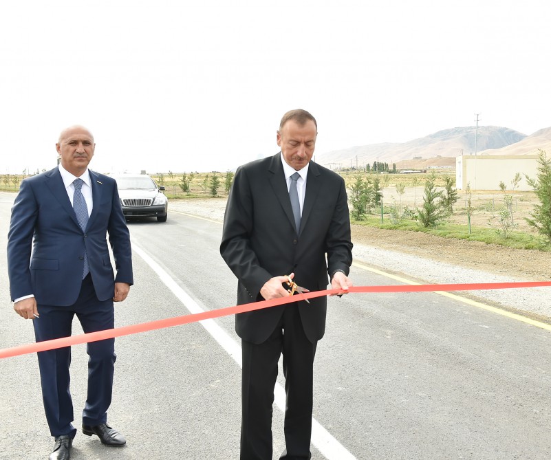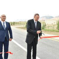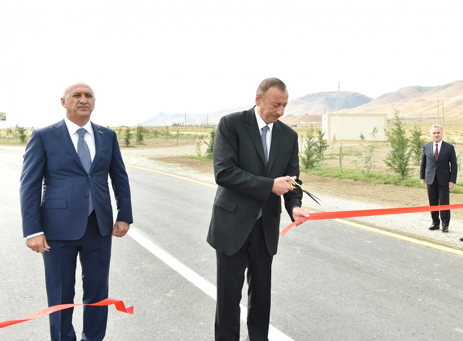 Azərbaycan Prezidenti İlham Əliyev yolun rəmzi açılışını bildirən lenti kəsib.