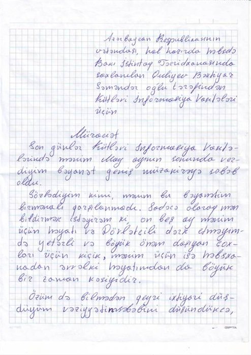 Müraciəti olduğu kimi təqdim edirik: ”Son günlər kütləvi informasiya vasitələrində mənim may ayının sonunda verdiyim bəyanat geniş müzakirəyə səbəb oldu.