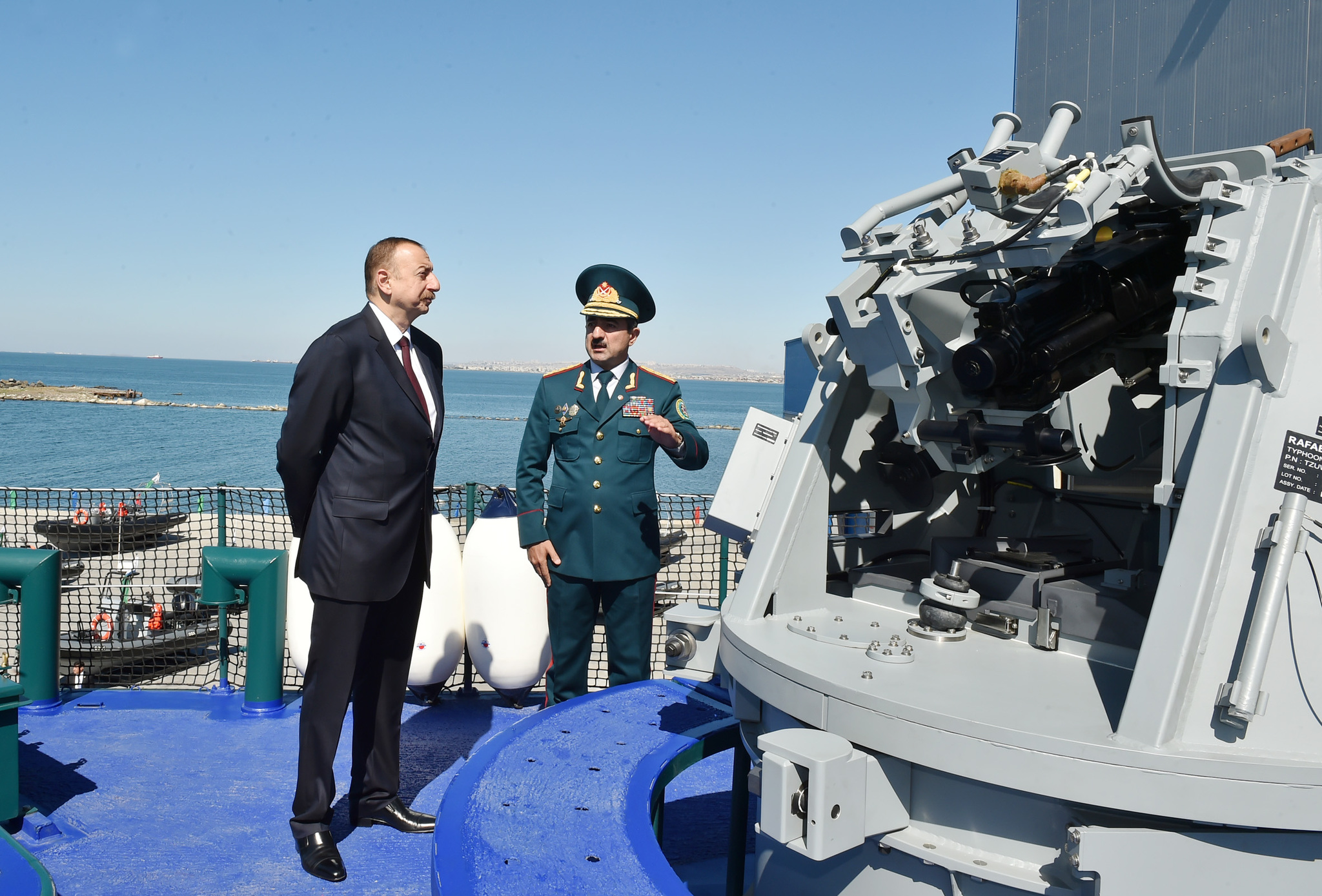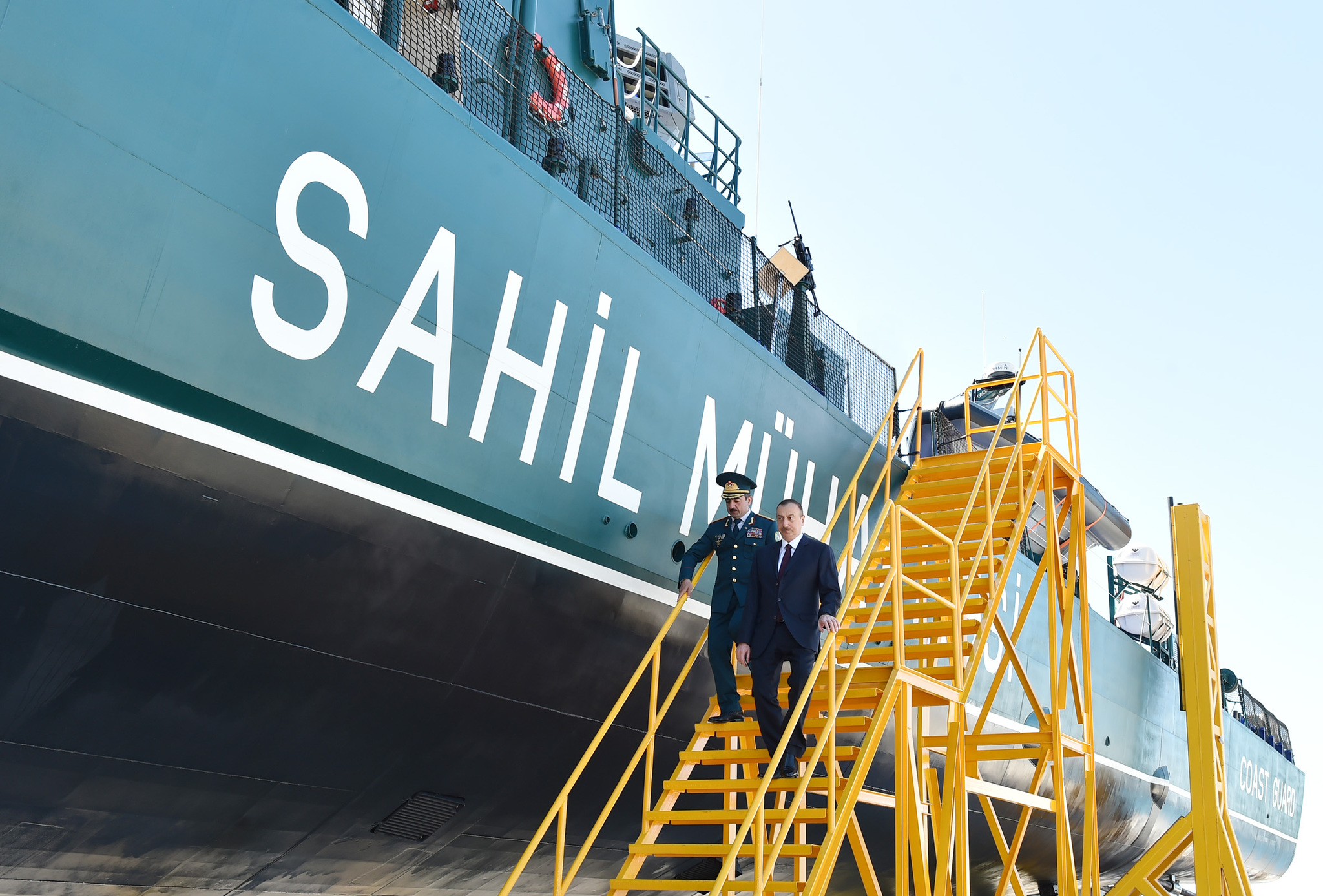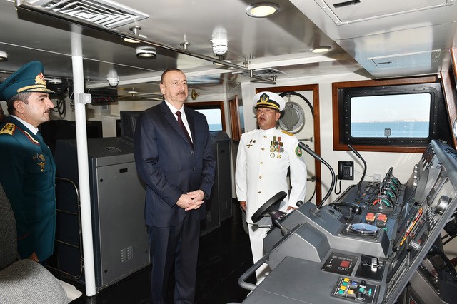 Sonra Azərbaycan Prezidenti sərhəd gözətçi gəmilərinin keçidinə baxdı.