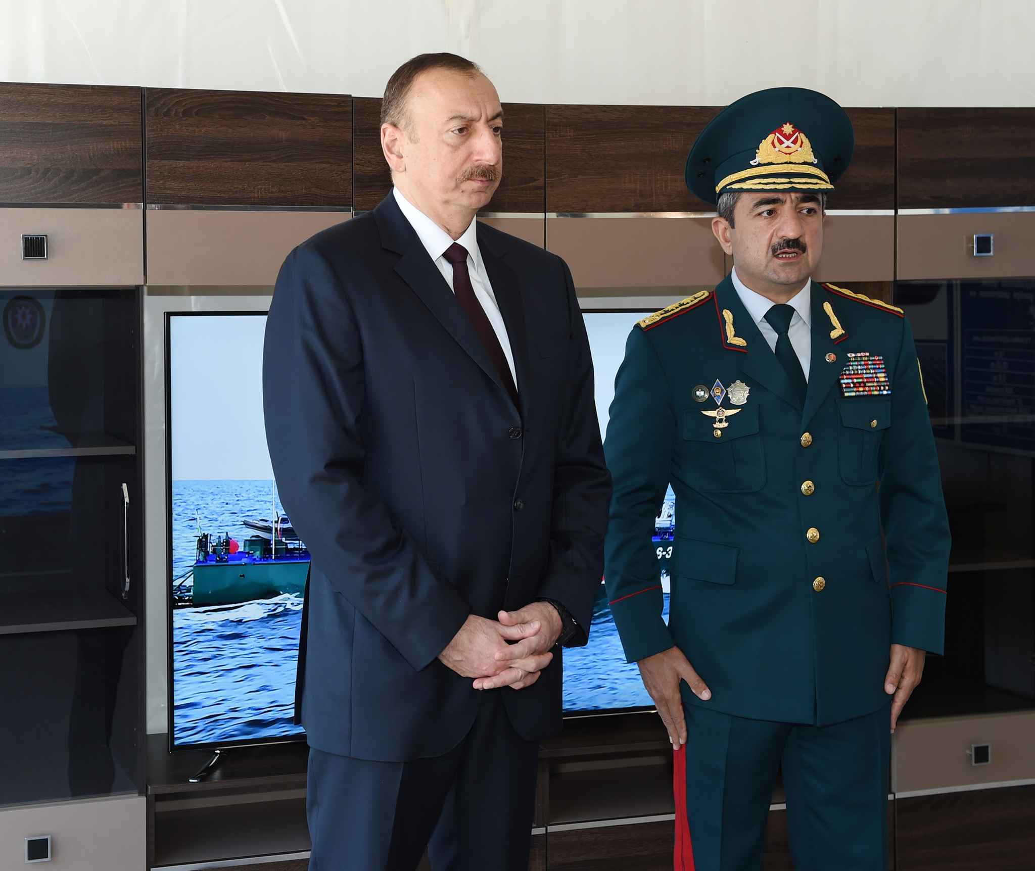 Dövlətimizin başçısı Sahil Mühafizənin sərhəd gözətçi gəmilərinin fəaliyyətini əks etdirən filmə və onların texniki göstəriciləri ilə bağlı stendə baxdı.