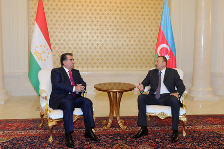 Rəsmi qarşılanma mərasimindən sonra Azərbaycan və Tacikistan prezidentlərinin təkbətək görüşü olub. Tacikistan prezidenti Emoməli Rəhmon deyib: "Tacikistanı və Azərbaycanı qədim tarix, mədəni əlaqələr birləşdirir. Əminəm ki, Sizin səfəriniz xalqlarımız arasında münasibətlərin inkişafına yeni təkan verəcək. Əlbəttə, bu səfər zamanı ikitərəfli münasibətlərin mühüm istiqamətləri daha dərindən müzakirə olunacaq və çoxtərəfli əməkdaşlığın proqramı müəyyənləşdiriləcək.