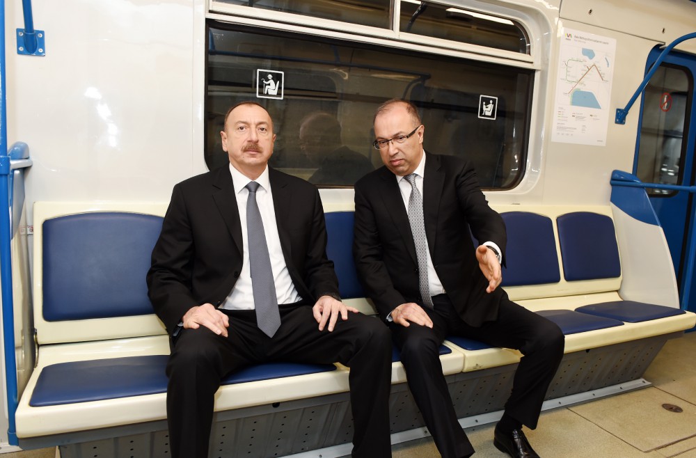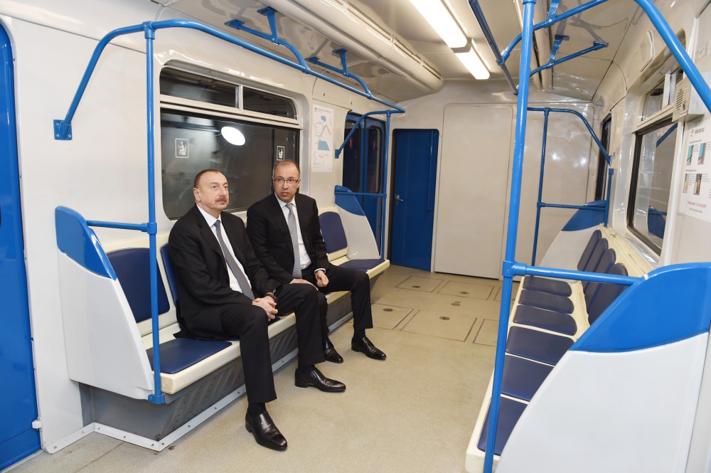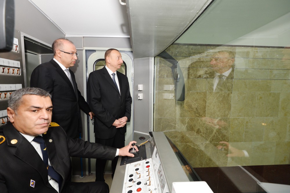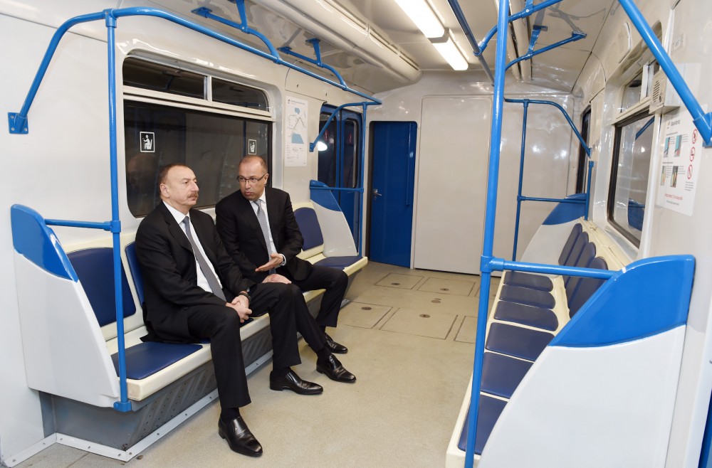 Sonra Prezident İlham Əliyev qatarla "Avtovağzal" stansiyasından "Memar Əcəmi" stansiyasına gəldi.