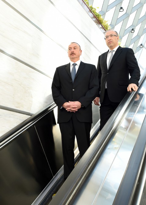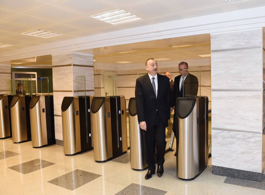 Dövlətimizin başçısı "Avtovağzal" stansiyasının rəmzi açılışını bildirən lenti kəsdi və burada yaradılan şəraitlə yaxından tanış oldu.