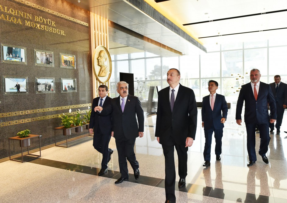 Teleqraf.com xəbər verir ki, Prezident İlham Əliyev binanın rəmzi açılışını bildirən lenti kəsib.