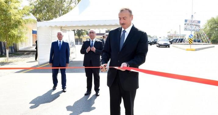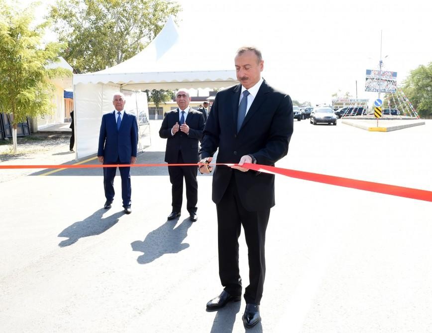 Dövlətimizin başçısı yolun rəmzi açılışını bildirən lenti kəsdi.