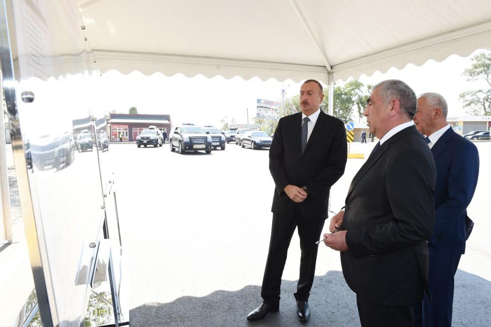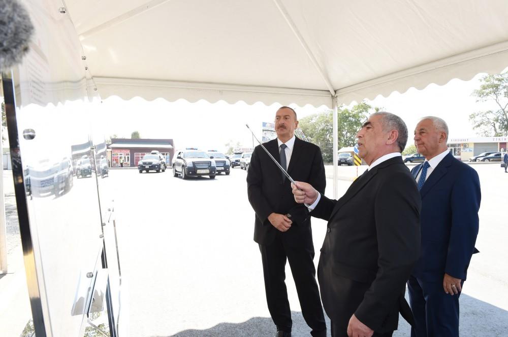 Dövlətimizin başçısı əvvəlcə yolun tikinti layihəsini əks etdirən stendə baxdı.
