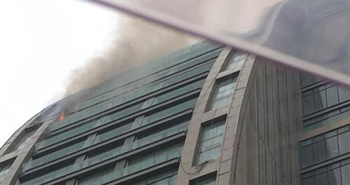 Yanğın binanın 13, 14, 15, 16, 17, 18, 19 və 20-ci mərtəbələrində müşahidə olunur./APA/
