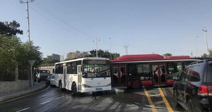 Minik avtomobili 90-TJ-109 dövlət nömrəli “Volkswagen” markalı avtomobili və 92 saylı xətt üzrə hərəkətdə olan sərnişin avtobusu arasında baş vermiş qəza yolda sıxlıq yaradıb.