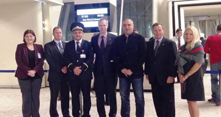 ABŞ-ın Azərbaycandakı Səfirliyinin İqtisadi Bölməsinin müdiri Xaqen Maroney Azərbaycan Hava Yollarına məxsus təyyarə ilə Bakıdan Nyu-Yorka uçan ilk birbaşa reysdən istifadə edəcək.