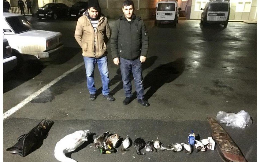 Saxlanılan şəxslərdən ümumilikdə 10 ədəd çöl quşu və 2 ədəd ov tüfəngi götürülüb.