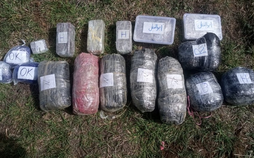 Həyata keçirilən axtarış tədbirləri nəticəsində ərazidə aşkarlanan 2 ədəd bağlamadan çəkisi 16 kiloqram 820 qram narkotik vasitəyə (8 kiloqram 280 qram heroin, 8 kiloqram 480 qram marixuana, 0.60 qram metamfetamin) bənzər maddələr və psixotrop tərkibli 3189 ədəd metadon-40 dərman preparatı aşkarlanaraq götürülüb.