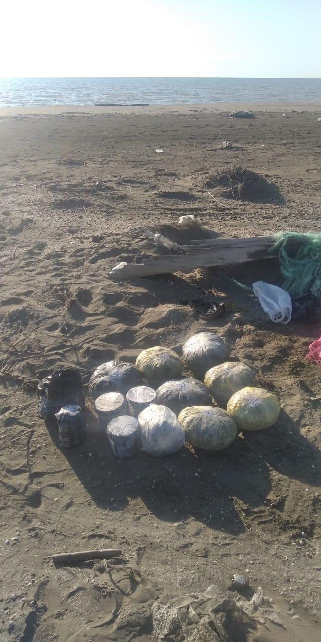 Nəticədə Cənub regional şöbəsinin “Mayak” sahil nəzarəti bölməsinin xidməti ərazisində Neftçala rayonunun Mayak kəndinin yaxınlığında dəniz sahilində iki ədəd şübhəli kisə aşkarlanıb. Kisələrə baxış zamanı 13 ədəd bağlamada təxmini çəkisi 22 kiloqram 855 qram narkotik vasitəyə (15 180 qram – marixuana, 7 175 qram – tiryək, 500 qram – heroin) bənzər maddələrvə 15 43 ədəd psixotrop tərkibli həbləraşkar olunaraq götürülüb.