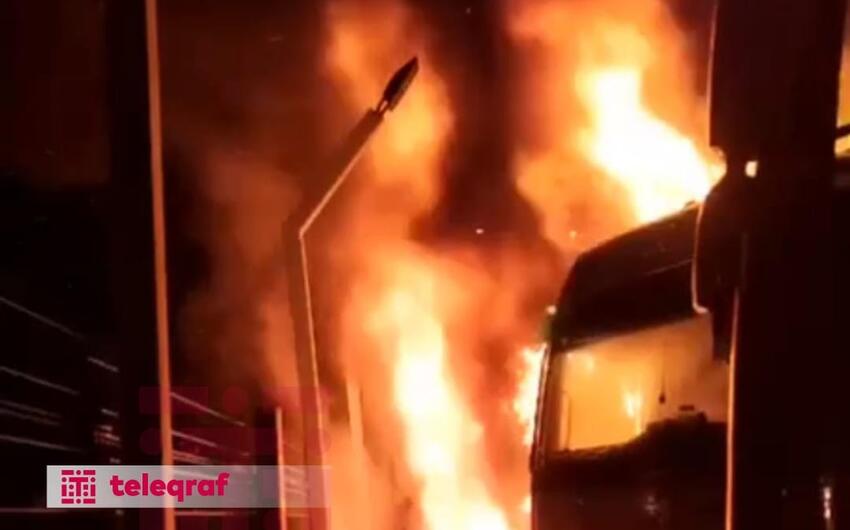 Güclü yanğın nəticəsində magistral yol bağlanıb, bölgədəki bir sıra ictimai-iaşə obyektləri yanıb.