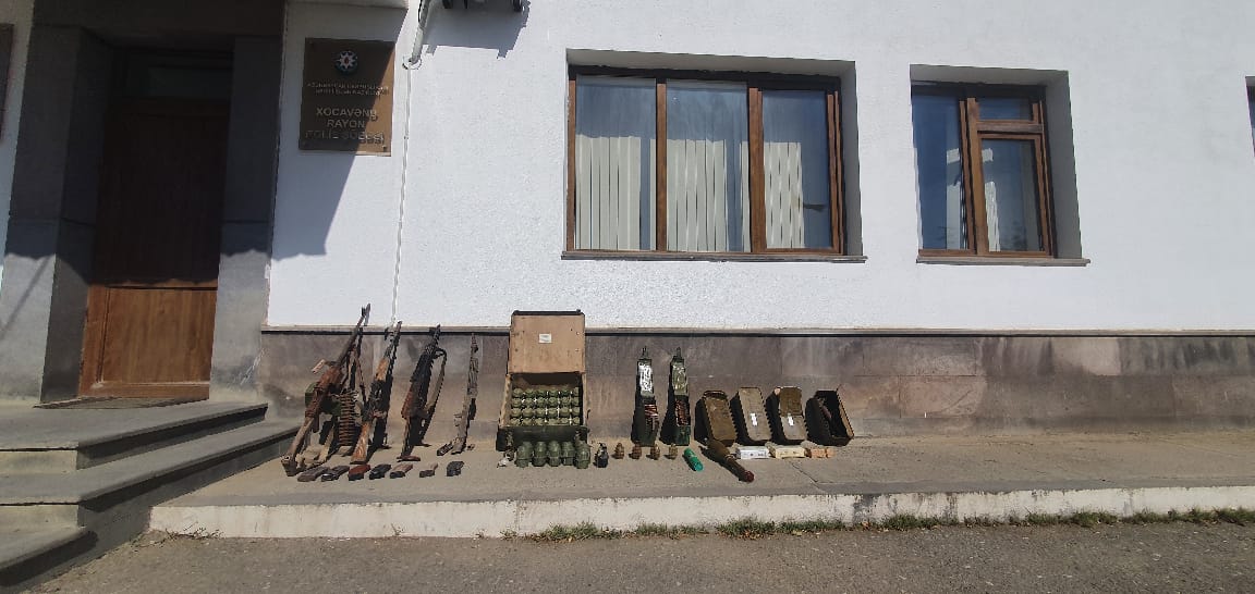 Xocavənd rayon polis şöbəsi əməkdaşlarının rayon ərazisində keçirdiyi tədbirlər nəticəsində 3 avtomat, 1 pulemyot, 48 əl qumbarası, 1 mərmi və digər sursatlar götürülərək aidiyyəti üzrə təhvil verilib.