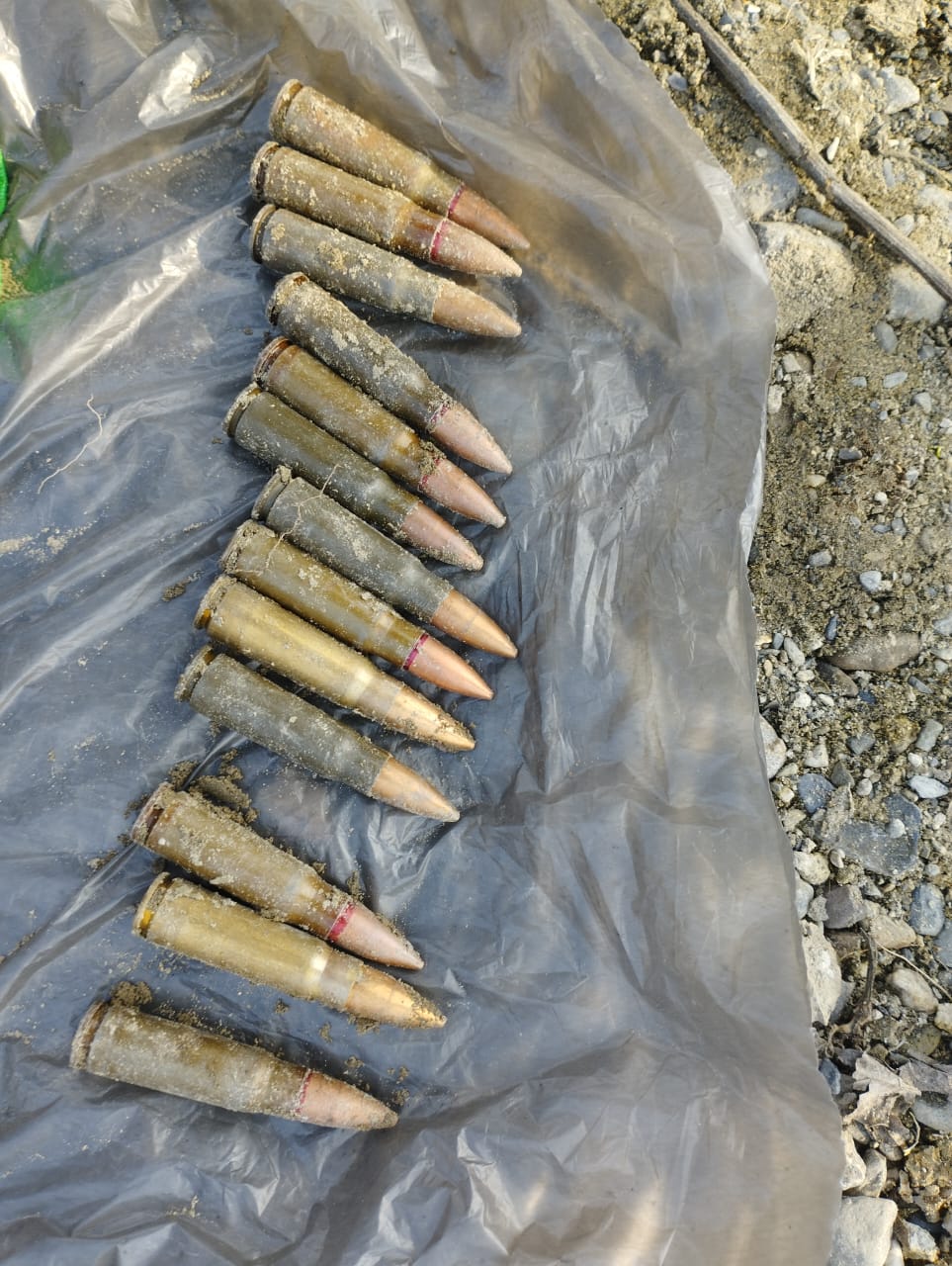 Polis əməkdaşları tərəfindən dərhal ərazinin mühafizəsi təşkil edilib və həmin bağlamaya baxış keçirilərkən “Kalaşnikov” avtomatına, “Makarov” tapançasına, ov tüfənginə məxsus patronlar, eləcə də 1 ədəd lüləsi kəsilmiş tüfəng və RQD-5 qumbarası aşkarlanıb.