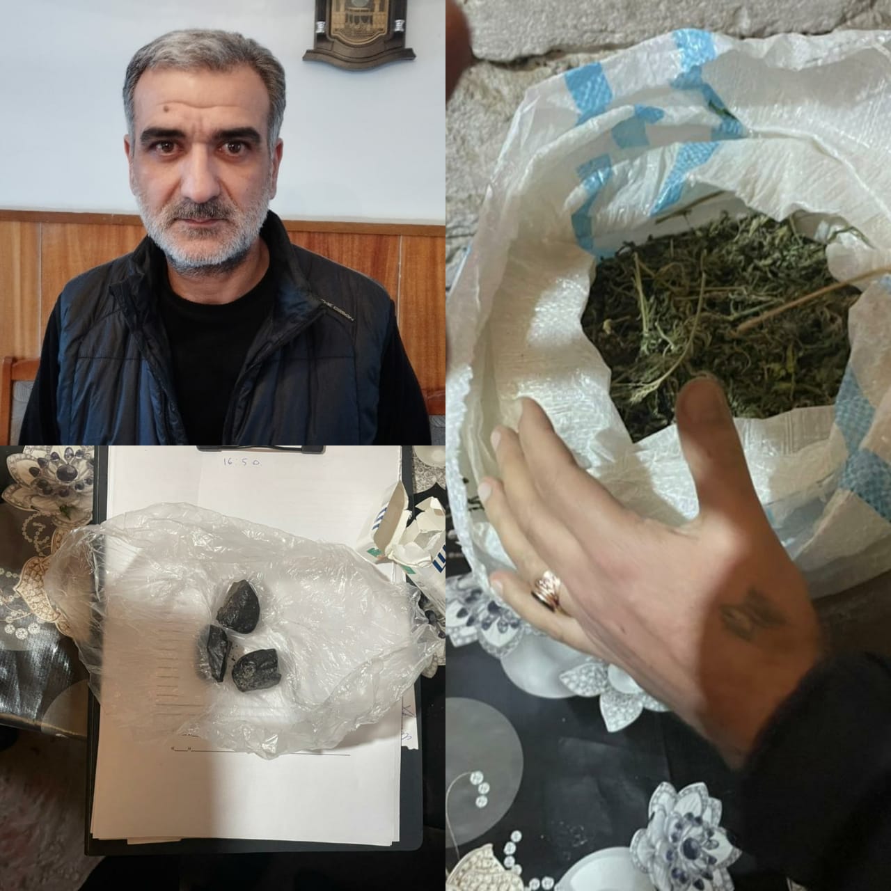 Oradan məişət əşyalarının içərisində gizlətdiyi 3 kiloqram 300 qrama yaxın qurudulmuş marixuana və 43 qram tiryək aşkar edilib.