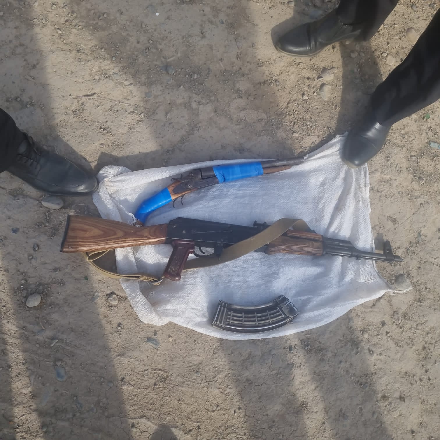 Sözügedən əraziyə baxış keçirilən zaman oradan 1 ədəd "Kalaşnikov" markalı avtomat, həmin silaha aid 1 ədəd daraq, 9 ədəd 7.62 mm-lik patron və bir ədəd 16 kalibirli, qundağı və lüləsi kəsilmiş ov tüfəngi aşkarlanıb.