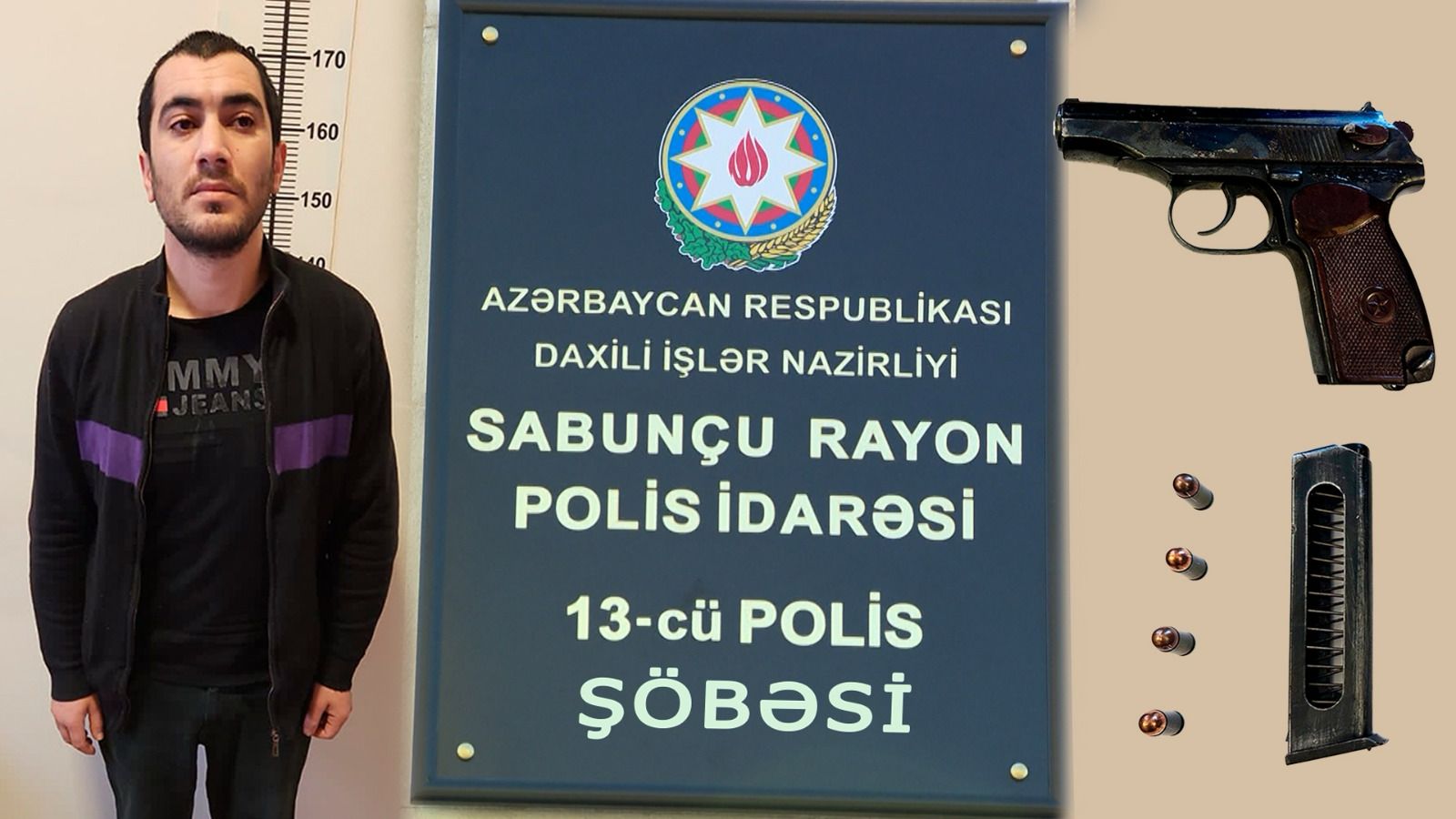 Sabunçu Rayon Polis İdarəsinin 13-cü Polis Şöbəsinin əməkdaşları tərəfindən həyata keçirilən tədbir zamanı Bakı şəhər sakini əvvəllər məhkum olunmuş 1992-ci il təvəllüdlü Nemət Şükürov üzərində qanunsuz olaraq odlu silah gəzdirdiyi üçün saxlanılıb.