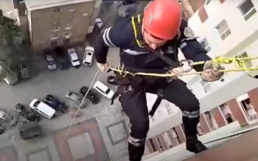 Bakıda çoxmərtəbəli yaşayış binasında köməksiz qalan azyaşlıların xilas edilməsinin görüntüləri yayılıb.