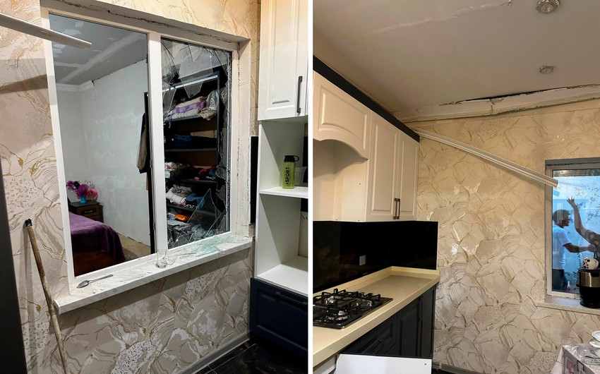 Hadisə nəticəsində evin mətbəxinin divarlarında çatlar əmələ gəlib, pəncərə şüşələri sınıb, 1 nəfər ayaq nahiyəsindən yüngül yanıq xəsarətləri alıb.