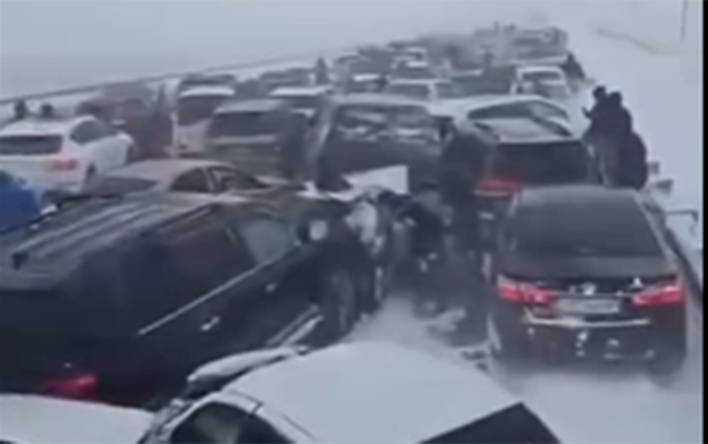 Qazaxıstan-Rusiya sərhədində, Astana-Petropavlovsk avtomobil yolunda 95 avtomobilin iştirakı ilə zəncirvari qəza baş verib.
