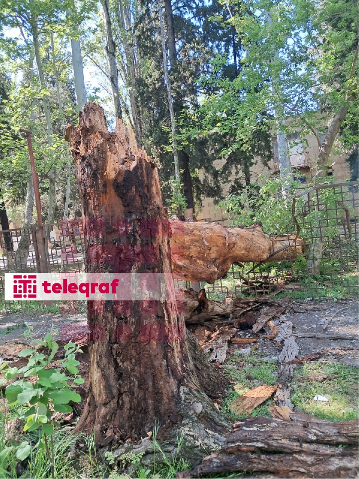 Ən ciddi fəsadlardan biri 14 saylı uşaq bağçası və körpələr evinin ərazisində qeydə alınıb. İri gövdəli ağac bu təhsil müəssisəsinin hasarının üzərinə aşaraq, onu tamamilə dağıdıb. Digər bir hadisə zamanı isə böyük bir ağac şəhər sakininə məxsus maşın qarajının üzərinə düşüb və konstruksiyaya ciddi ziyan vurub.