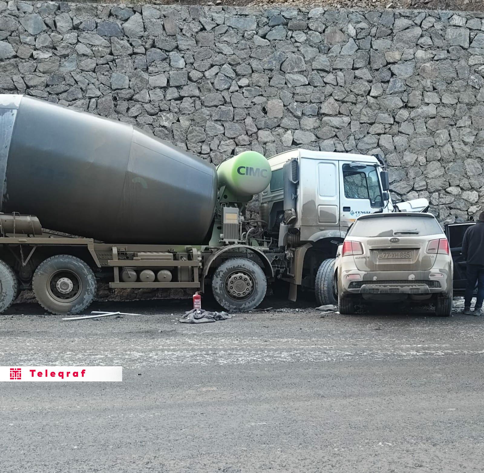 Teleqraf-ın yerli bürosu xəbər verir ki, "KİA" markalı avtomobil beton qarışdıran avtomobillə toqquşub.