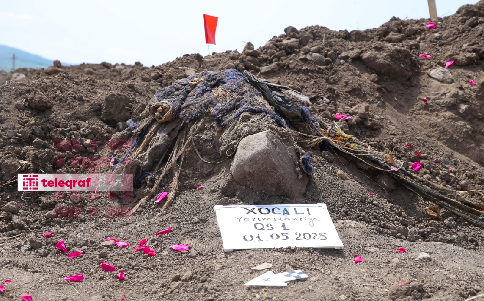 "Əsgəran-Xocalı yolunun üstündə aşkarlanan bu məzarlıqda ən azı 7 itkin şəhidə aid meyit qalıqları aşkarlanıb. Mütəxəssislərin rəyinə görə, qalıqlar mülki şəxslərə aiddir. Onlar qeyri-ənənəvi yolla dəfn olunublar".