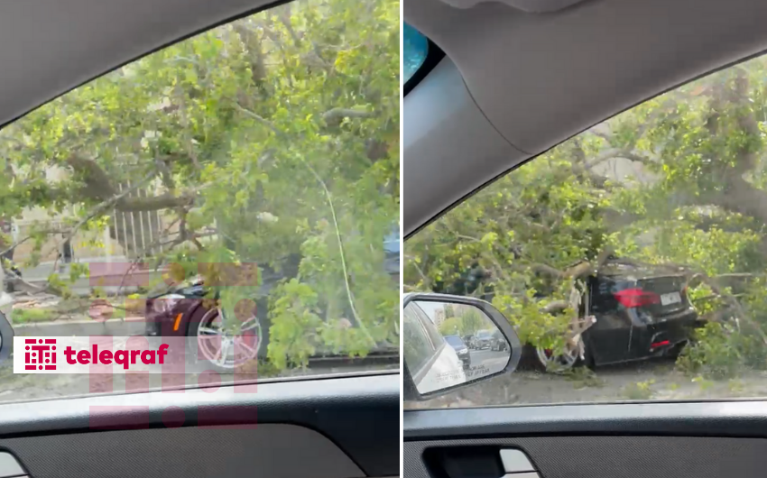 Bakının Yasamal rayonunda bahalı avtomobilin üzərinə ağac aşıb.