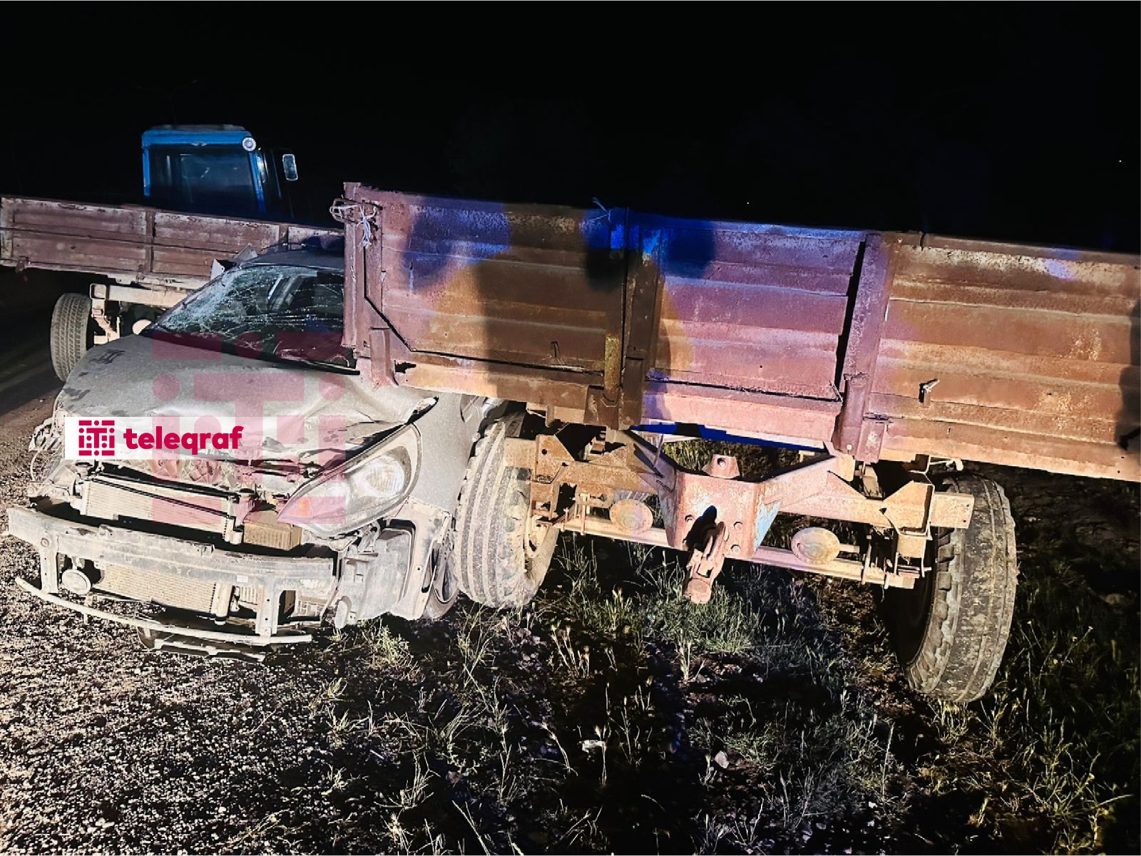 Rüfət Musayev idarə etdiyi "Traktor" la hərəkətdə olarkən Səxavət Həsənov "KİA" markalı avtomobillə idarəetməni itirərək, traktorun qoşqusuna çırpılıb. Nəticədə minik avtomobilinin sürücüsü S.Həsənov xəsarət alaraq, Bərdə Diaqnostika Mərkəzinə çatdırılıb.