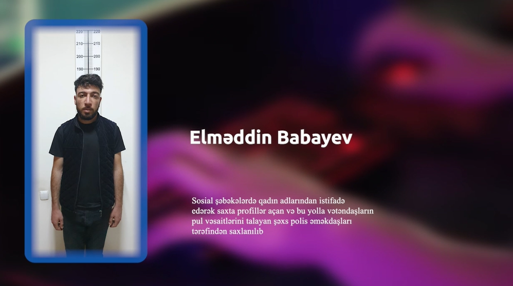 Babək Rayon Polis İdarəsinin əməkdaşları tərəfindən keçirilən tədbir nəticəsində sosial şəbəkələrdə qadın adlarından istifadə edərək saxta profillər açan və bu yolla vətəndaşların pul vəsaitlərini talayan 23 yaşlı Elməddin Babayev saxlanılıb.