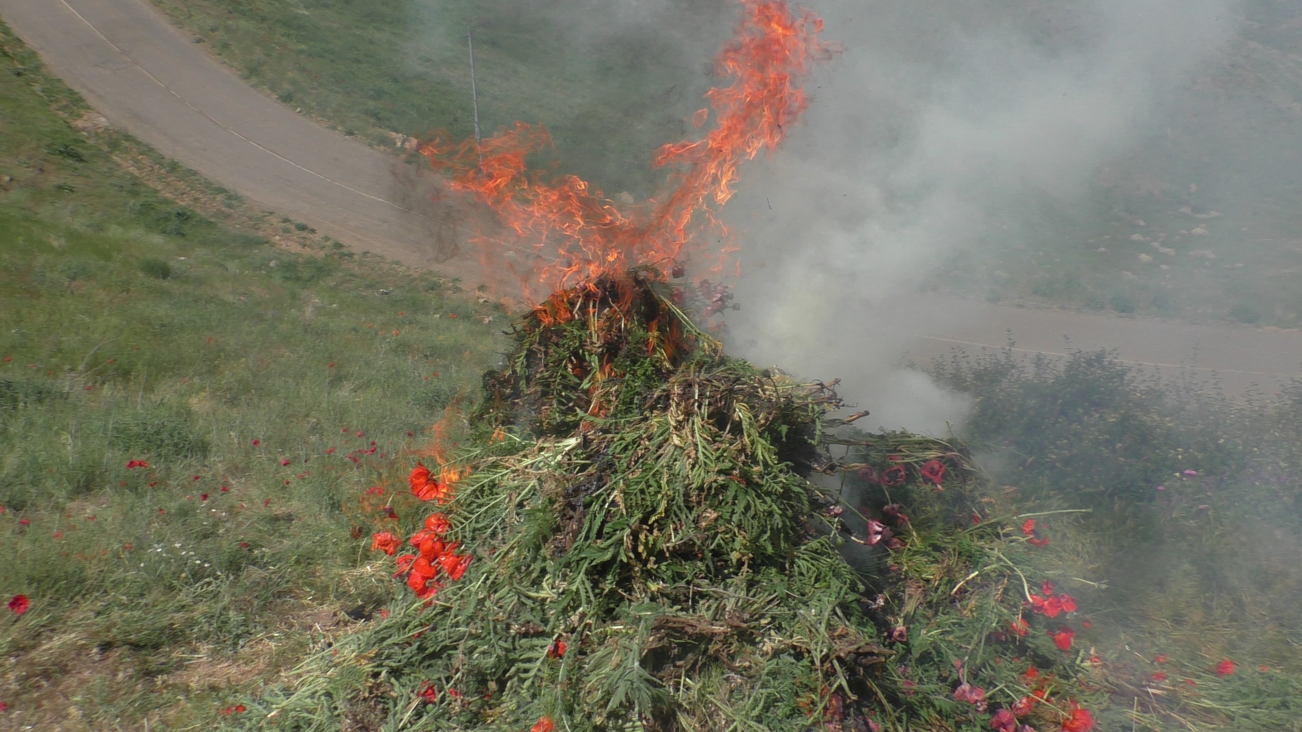 Bildirilib ki, ümumi çəkisi 1470 kiloqram olan 6700 ədəd xaş-xaş kolu yandırılaraq məhv edilib.