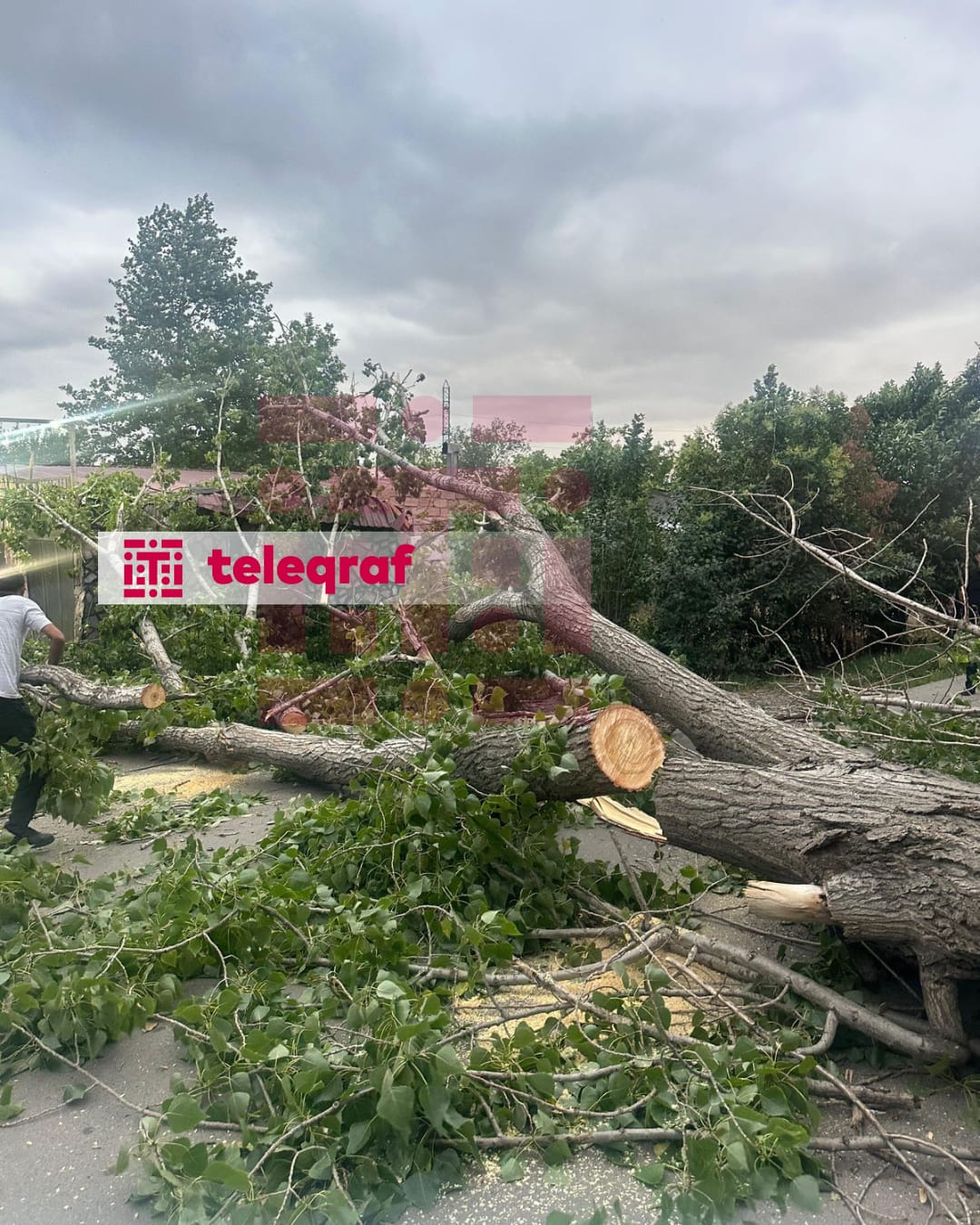 Teleqraf-ın yerli bürosu xəbər verir ki, əsən güclü külək şəhər ərazisində 5 iri gövdəli ağacı aşırıb.