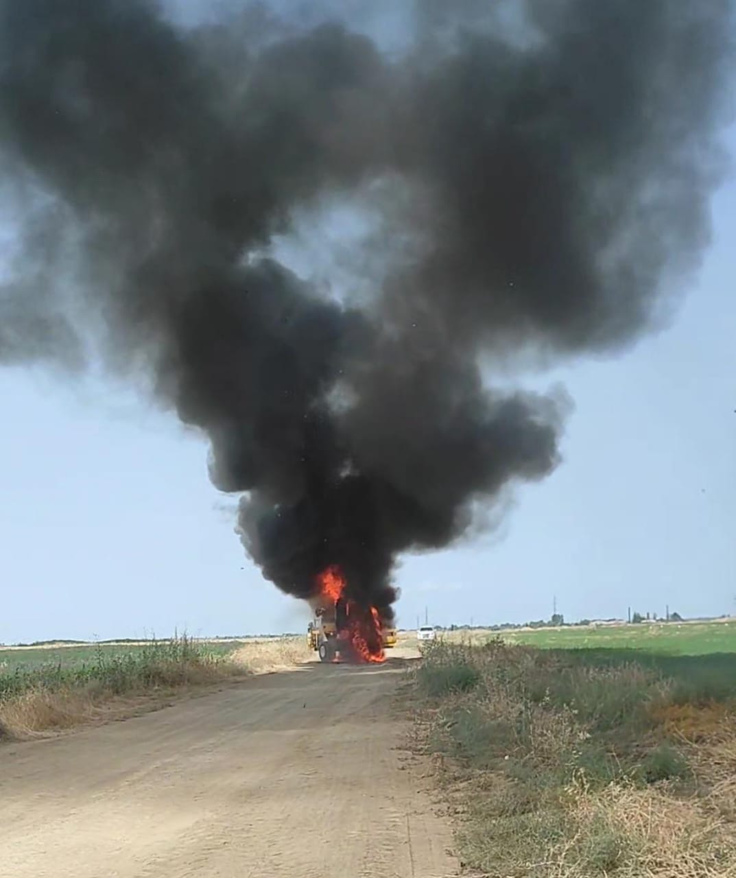Hadisə yerinə FHN-nin Yanğından Mühafizə Xidmətinin əməkdaşları gələrək yanan kombaynı söndrüb.