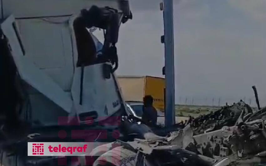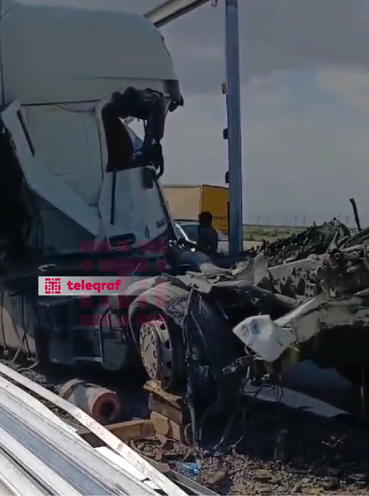 Belə ki, hərəkətdə olan "TIR" markalı yük maşını qarşısında gedən "KamAZ" markalı yük maşınına çırpılıb.