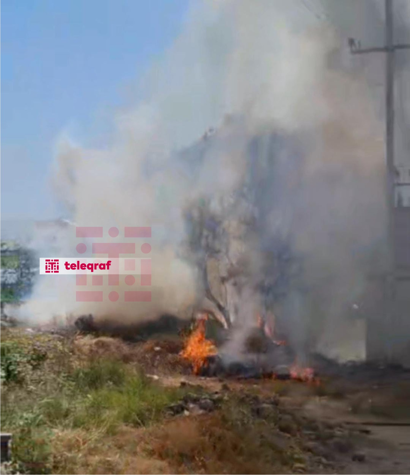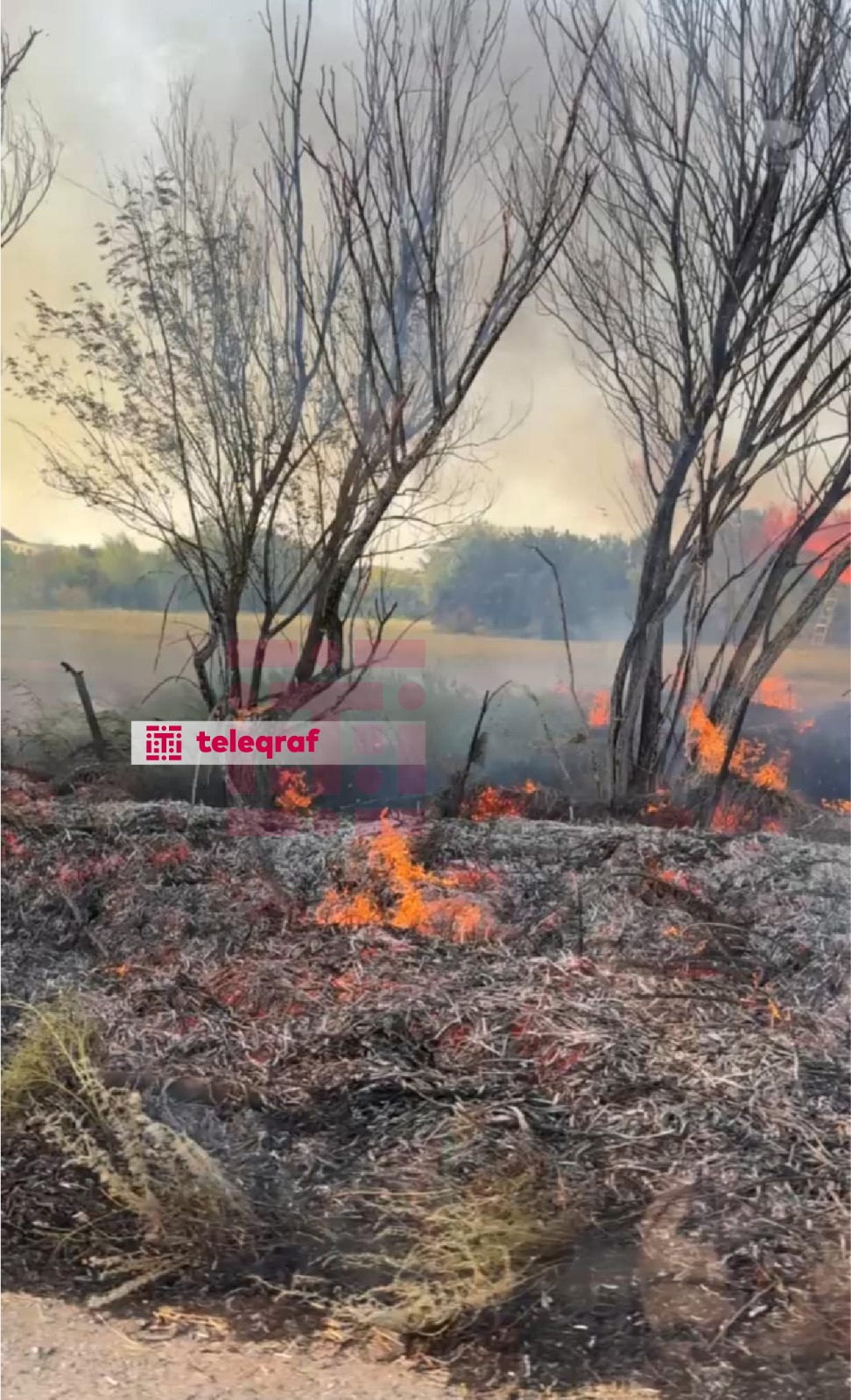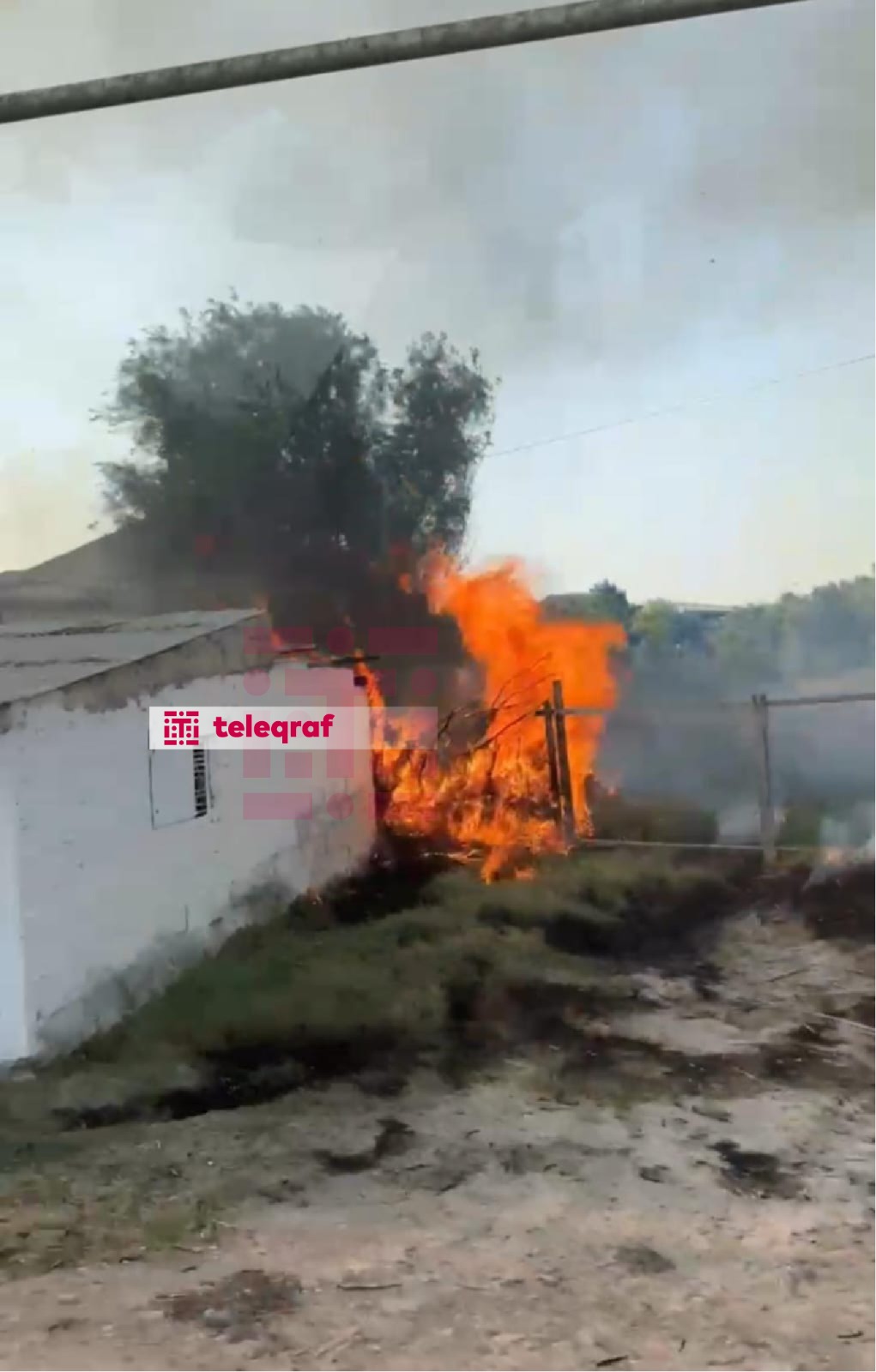 Yanğın zamanı yol kənarında olan ağaclar və yaşayış evlərinin həyəti yanıb.