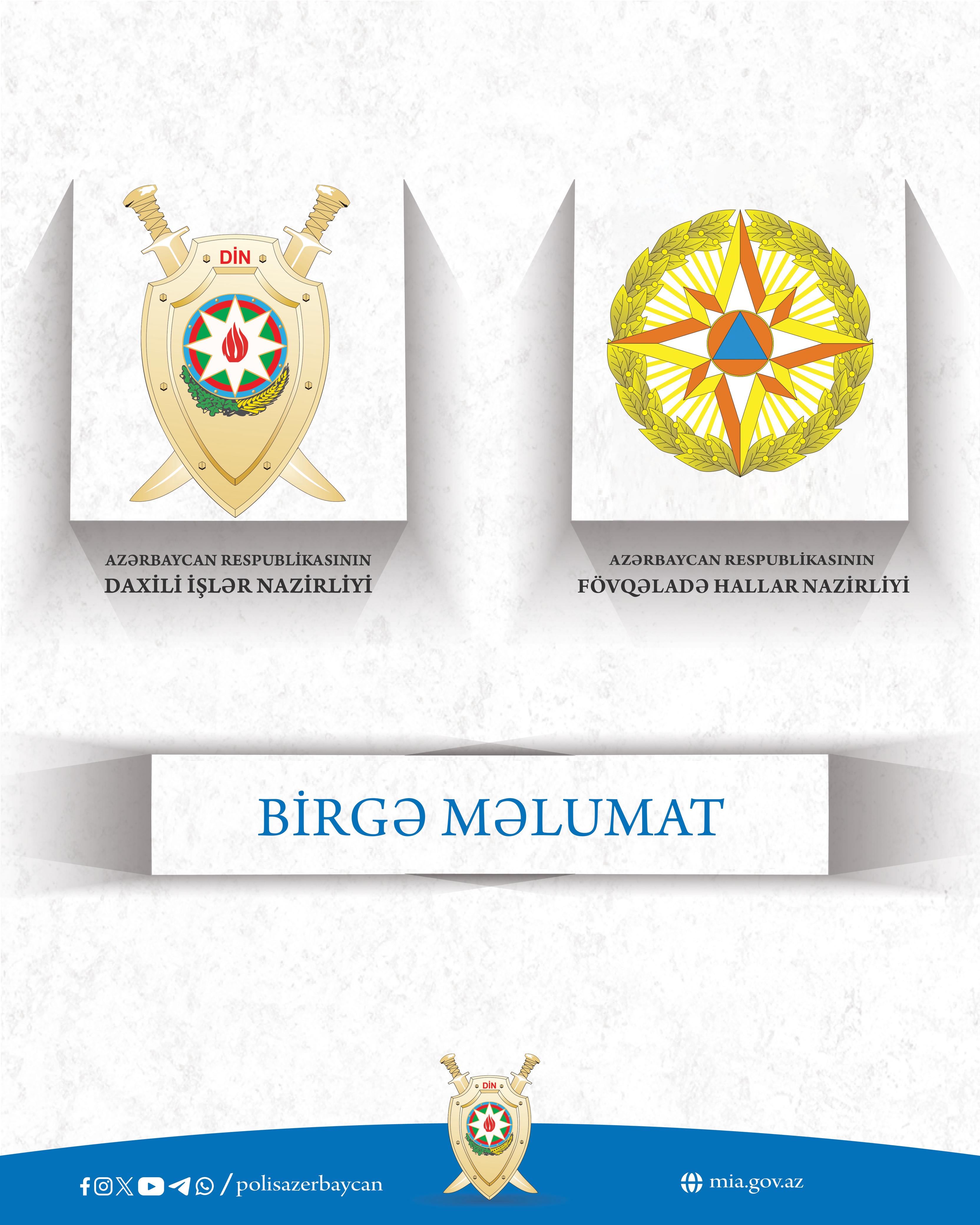 Teleqraf xəbər verir ki, bu barədə Daxili İşlər Nazirliyi və Fövqəladə Hallar Nazirliyinin mətbuat xidmətlərinin birgə məlumatında qeyd olunub.