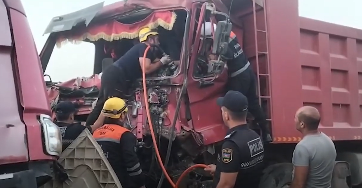 Hadisə yerində əməliyyat şəraiti qiymətləndirilərkən müəyyən olunub ki, “Shacman” markalı yük avtomobillərinin toqquşması nəticəsində yol-qəza hadisəsi baş verib və hər iki yük avtomobilinin sürücüsü deformasiyaya uğramış avtomobildə sıxılı vəziyyətdə qalıb.