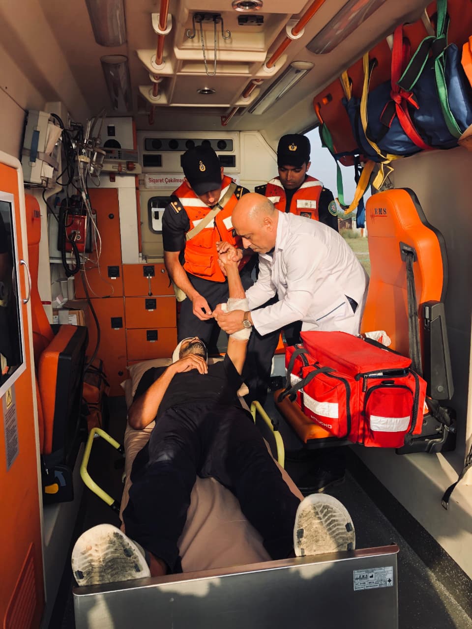 Üzmə vasitəsində baş vermiş yanğın səbəbilə hər iki şəxs bağlamalarla birlikdə özlərini dənizə atsa da, keçirilmiş xilasetmə tədbirləri nəticəsində sərhəd pozucuları sudan çıxarılaraq yaralıya ilkin tibbi yardım göstərilib, “Yamaha-200” markalı “Layner” tipli üzmə vasitəsində baş verən yanğın söndürülüb, dənizə atılmış bağlamada isə ümumi çəkisi 11 kiloqram 850 qram narkotik vasitə aşkarlanaraq götürülüb.