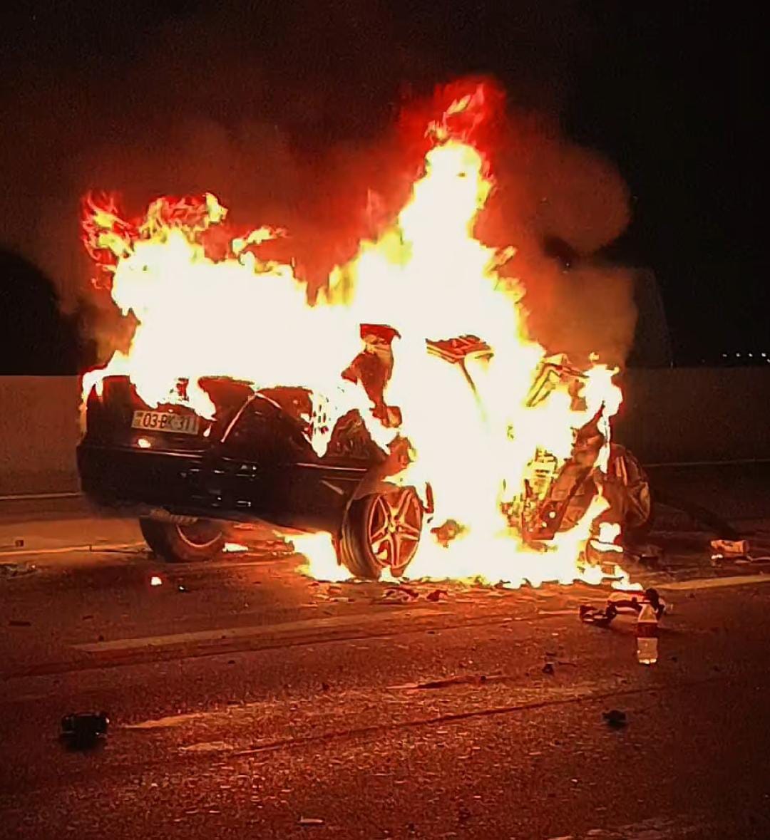 Bakı-Quba yolunda baş verən qəzada avtomobil yanıb.