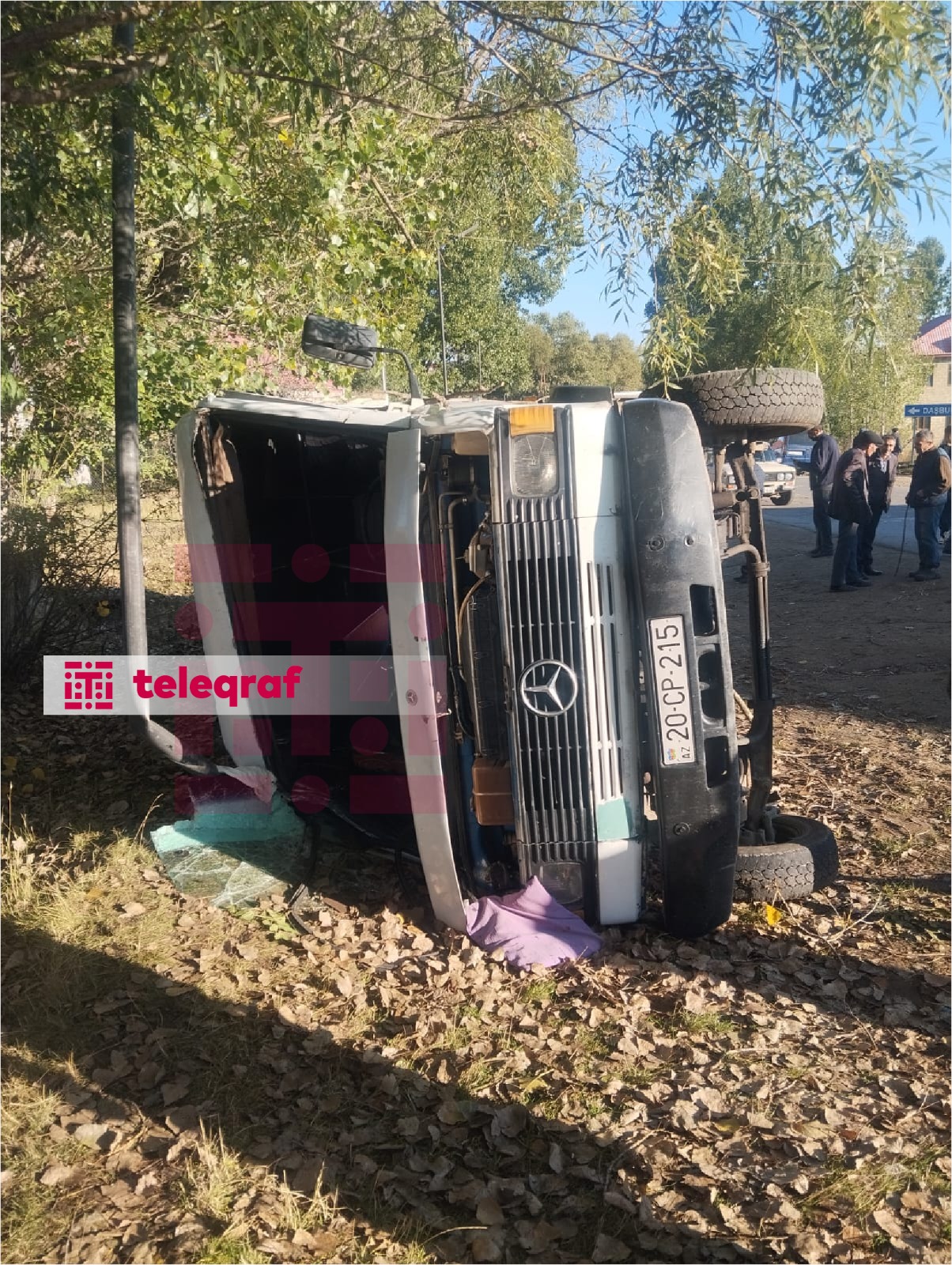 Teleqraf-ın Qərb bürosu xəbər verir ki, qəza zamanı mikroavtobus idarəetmədən çıxaraq aşıb.