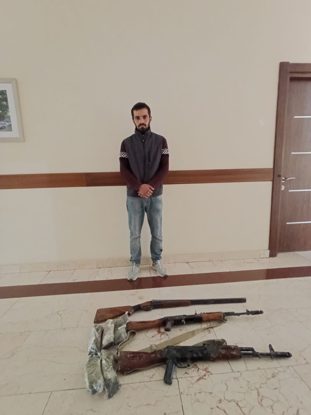 Onun yaşadığı evdən 2 “Kalaşnikov” avtomatı, 1 “İJ” markalı ov tüfəngi, 5 patron darağı və 150 ədəd patron aşkarlanaraq götürülüb.