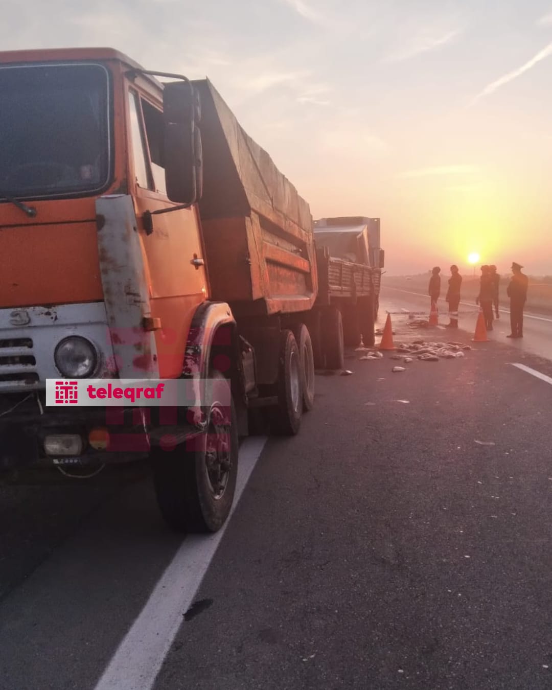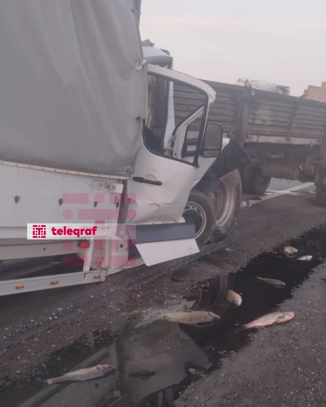 Hadisə zamanı mişar daşı və balıq daşıyan yük maşınları toqquşub.