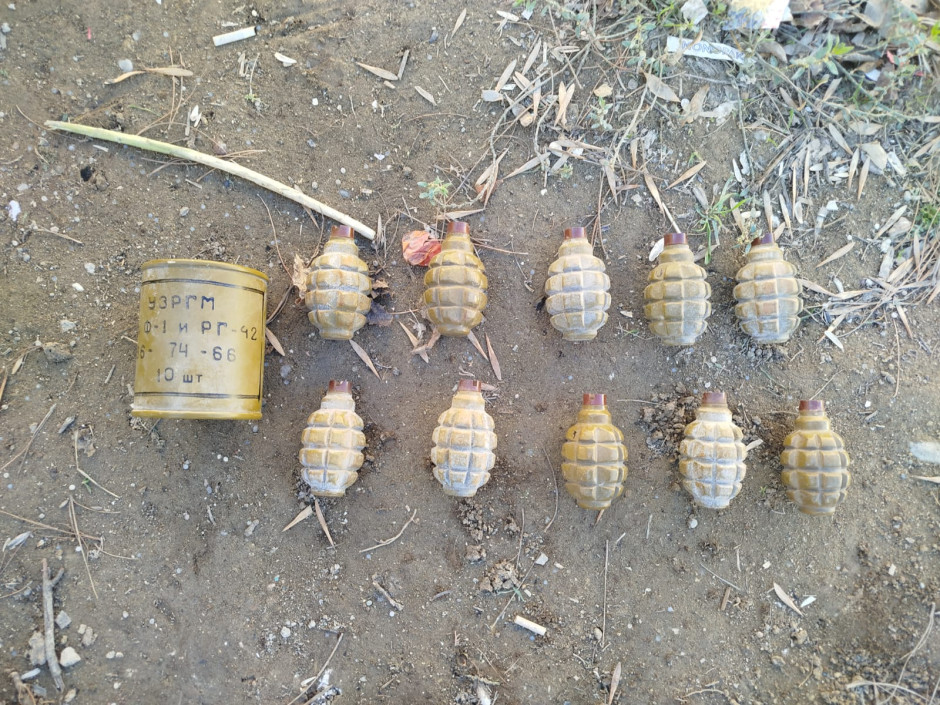 Hüquq-mühafizə orqanı əməkdaşları ilə birgə ərazidə müvafiq təhlükəsizlik tədbirləri görüldükdən sonra hadisə yerinə baxış zamanı aşkar edilmiş sursatların döyüş tətbiqinə yararlı 10 ədəd F-1 əl qumbarası, 1 qutu F-1 və RQD-5 əl qumbaralarının parladıcıları olduğu müəyyən edilib.