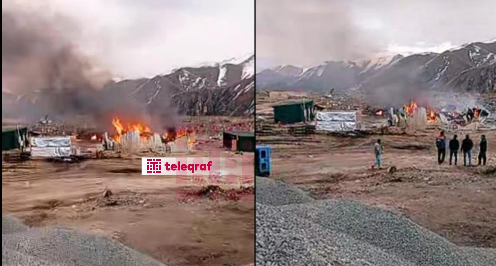 Kənd ərazisində tikintidə çalışan usta və fəhlələrin qaldığı kamp yanaraq tamamilə külə dönüb.