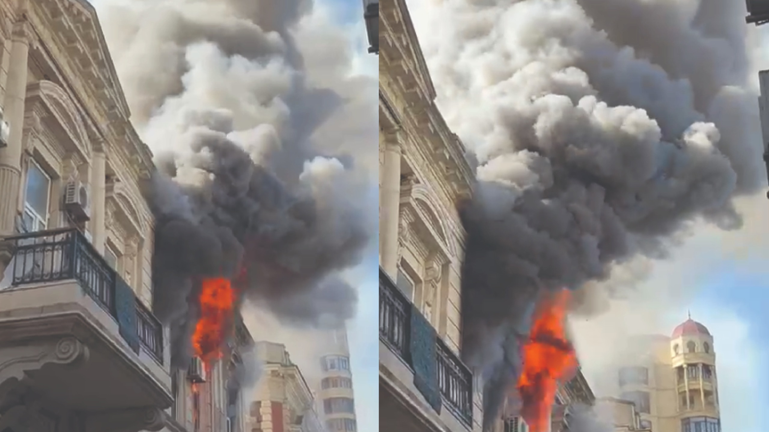 Bakının mərkəzi küçələrindən birində yaşayış binasında yanğın başlayıb.