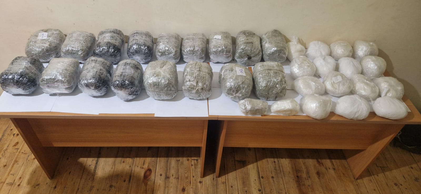 Daxili İşlər Nazirliyinin əməkdaşları ilə birgə keçirilmiş sərhəd axtarışı və əməliyyat tədbirləri nəticəsində ərazidə sərhəd pozucularına məxsus 3 (üç) ədəd bağlamada ümumi çəkisi 33 kiloqram 900 qram narkotik vasitə və digər maddi sübutlar aşkar olunaraq götürülüb.