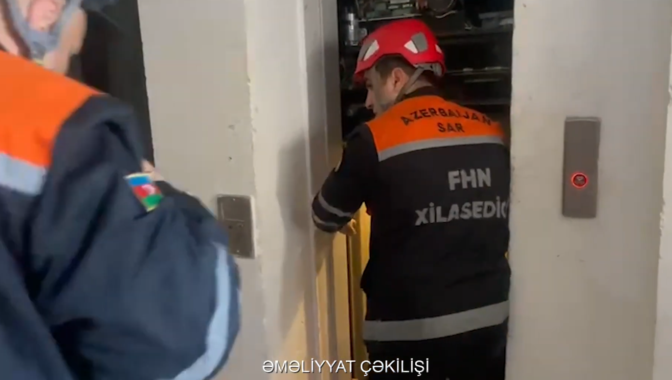 Xilasedicilər tərəfindən xüsusi vasitələrin köməyi ilə liftin qapısı açılaraq köməksiz vəziyyətdə qalan bina sakini xilas edilib.