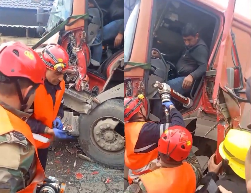 Hadisə yerində əməliyyat şəraiti qiymətləndirilərkən “Shacman” markalı iki yük avtomobilinin toqquşması nəticəsində yol-qəza hadisəsinin baş verdiyi və sürücünün deformasiyaya uğramış nəqliyyat vasitəsində sıxılı vəziyyətdə qaldığı müəyyən olunub.